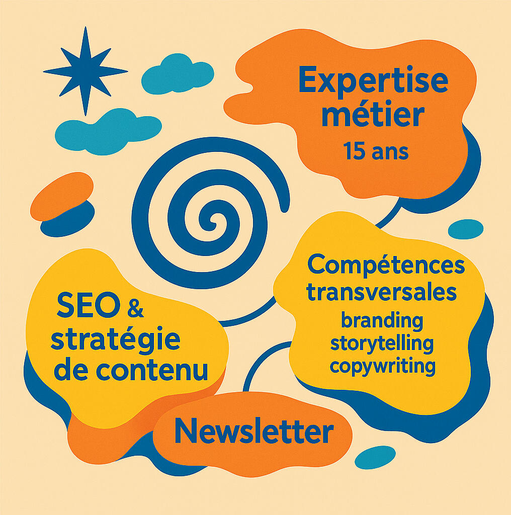 Compétences transversales : stratégie SEO, contenu et growth content, newsletter, branding, storytelling, copywriting.